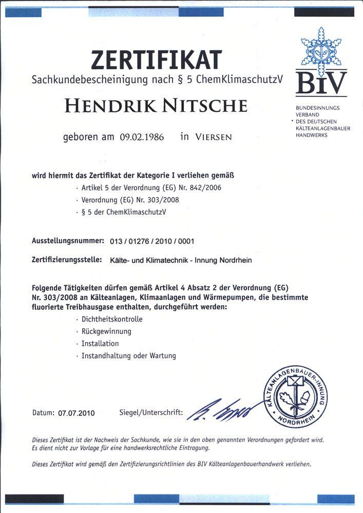 Die Fa. K.I.S. GmbH ist ein bei der Handwerkskammer Düsseldorf eingetragener Meisterbetrieb im Kälteanlagenbauer Handwerk.