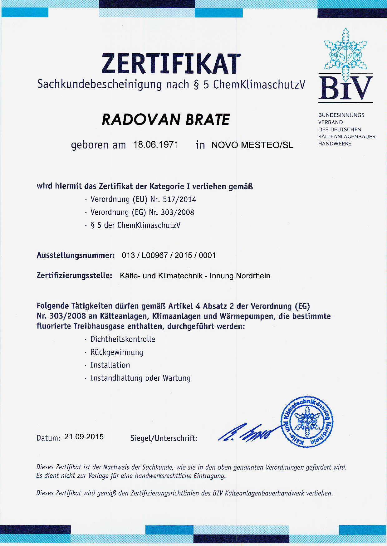Unser Geschäftsführer Radovan Brate hat eine Ausbildung zum Elektriker- Elektroniker gemacht und verfügt über mehr als 20 Jahre Erfahrung im Kälteanlagenbau und in der Klimatechnik.