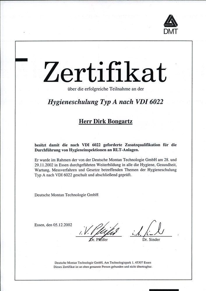 Wir sind zertifiziert nach VDI 6022 Hygieneverordnung und nach §5 der Chemikalien Klimaschutzverordnung.